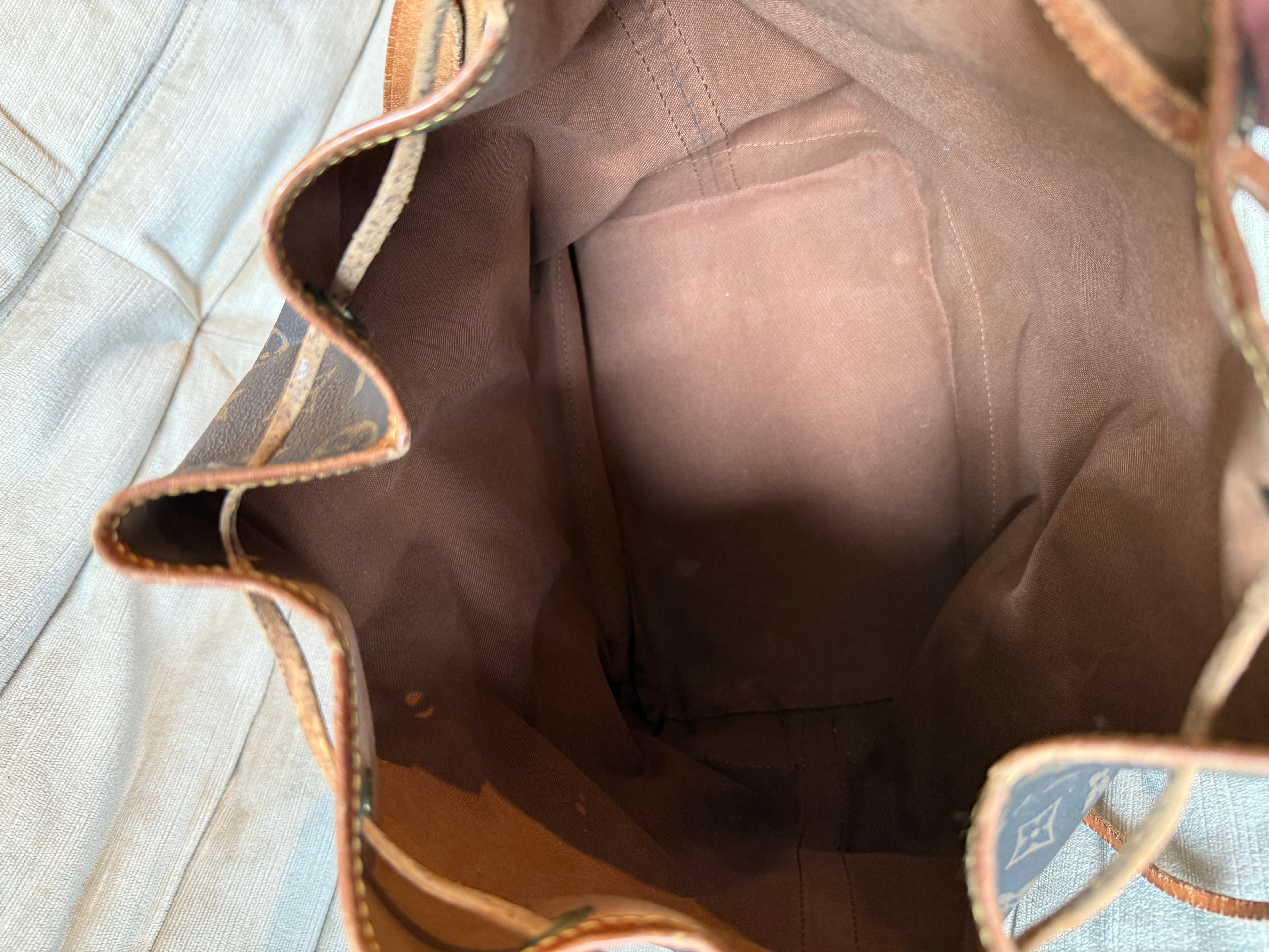 Zustand außen: in Ordnung, Patina am Leder, Risse an den Ecken (ist aber nur in der äußeren Schicht, also kann nichts durchfallen)