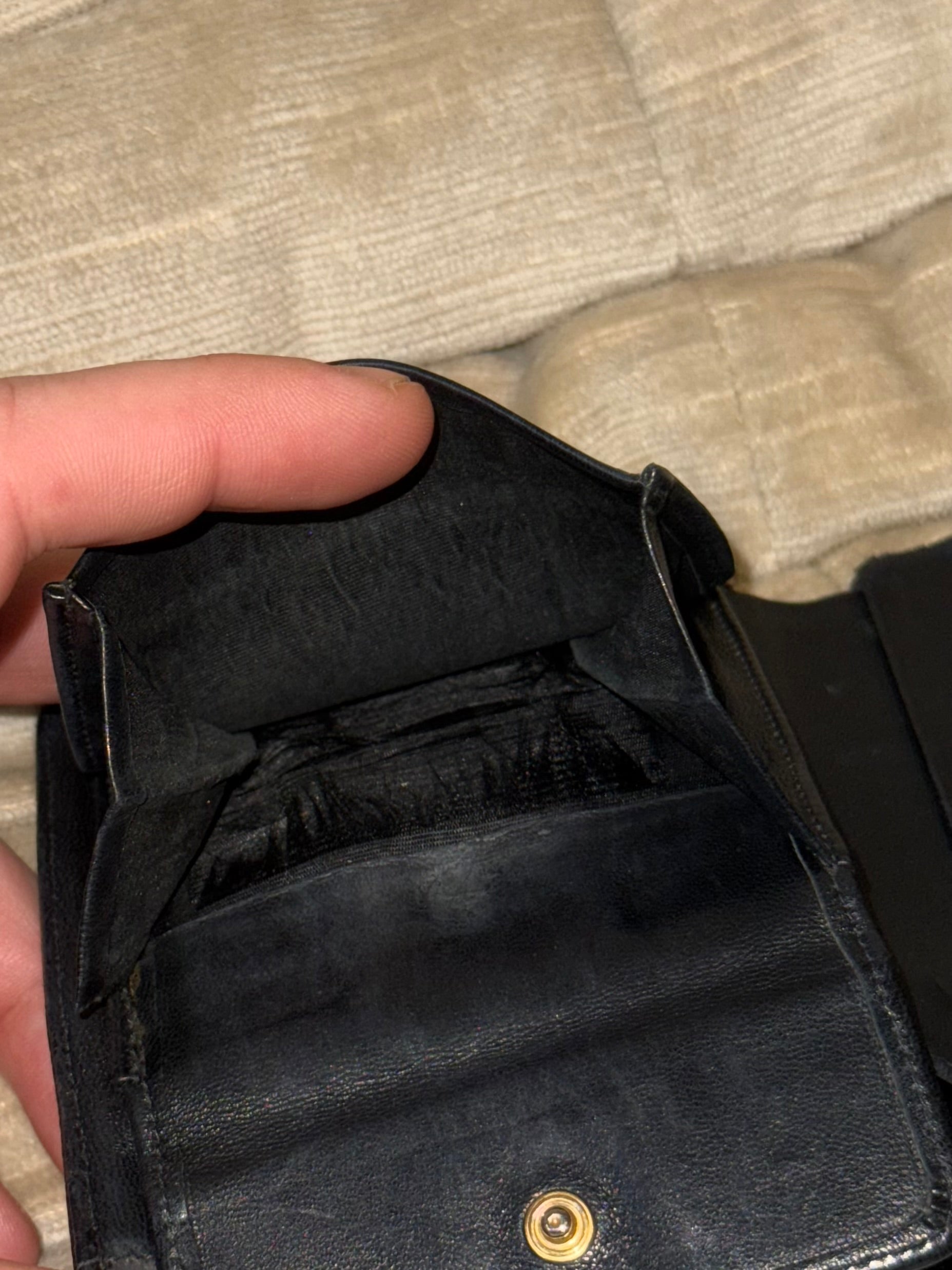 Zustand innen: ok, kleiner Riss am Kartenfach und im Fach für das Kleingeld