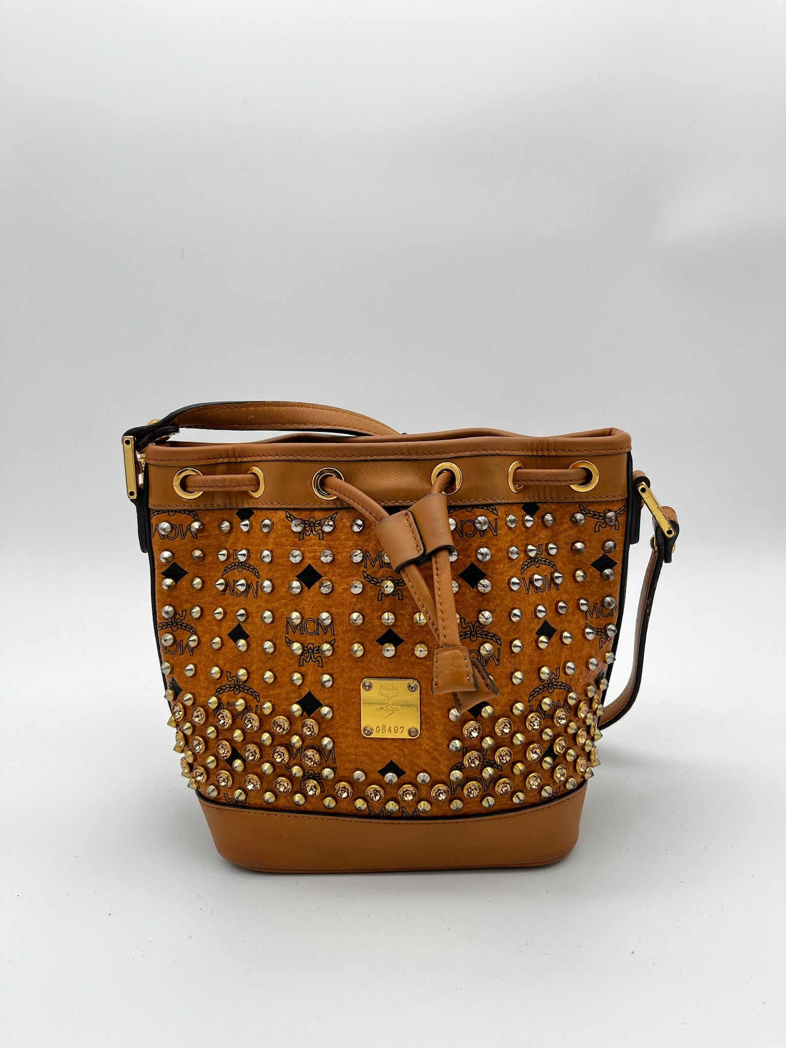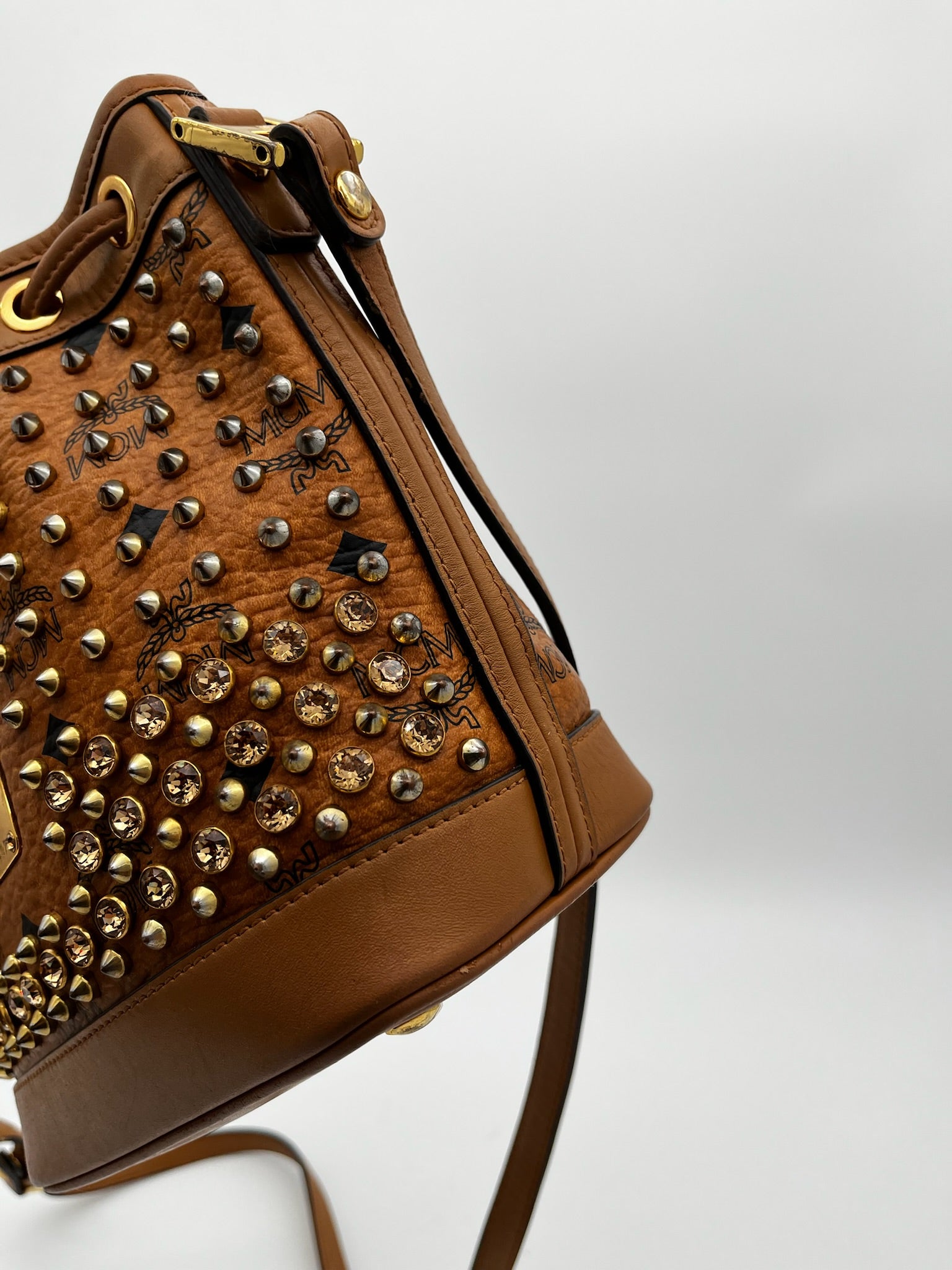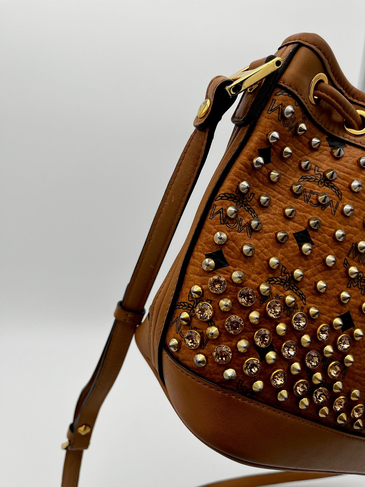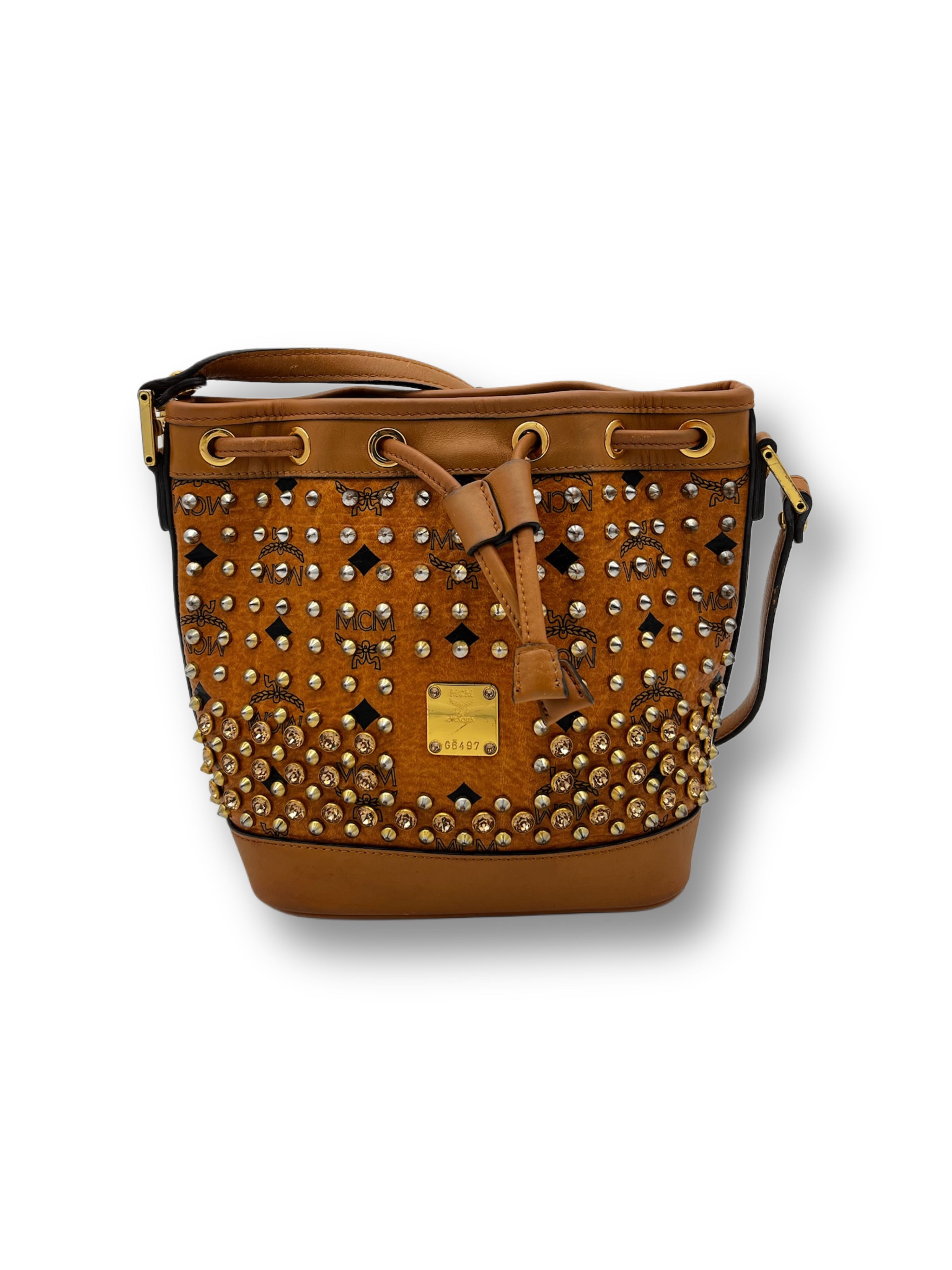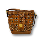 MCM Visetos Studded Drawstring Bucket Bag