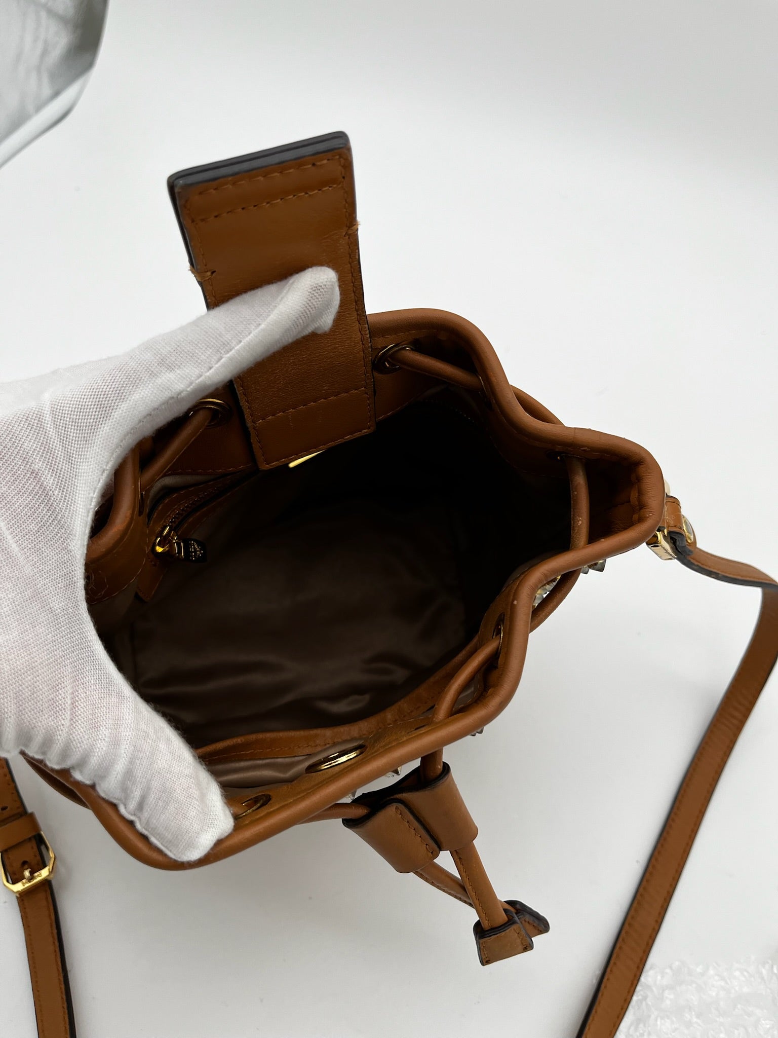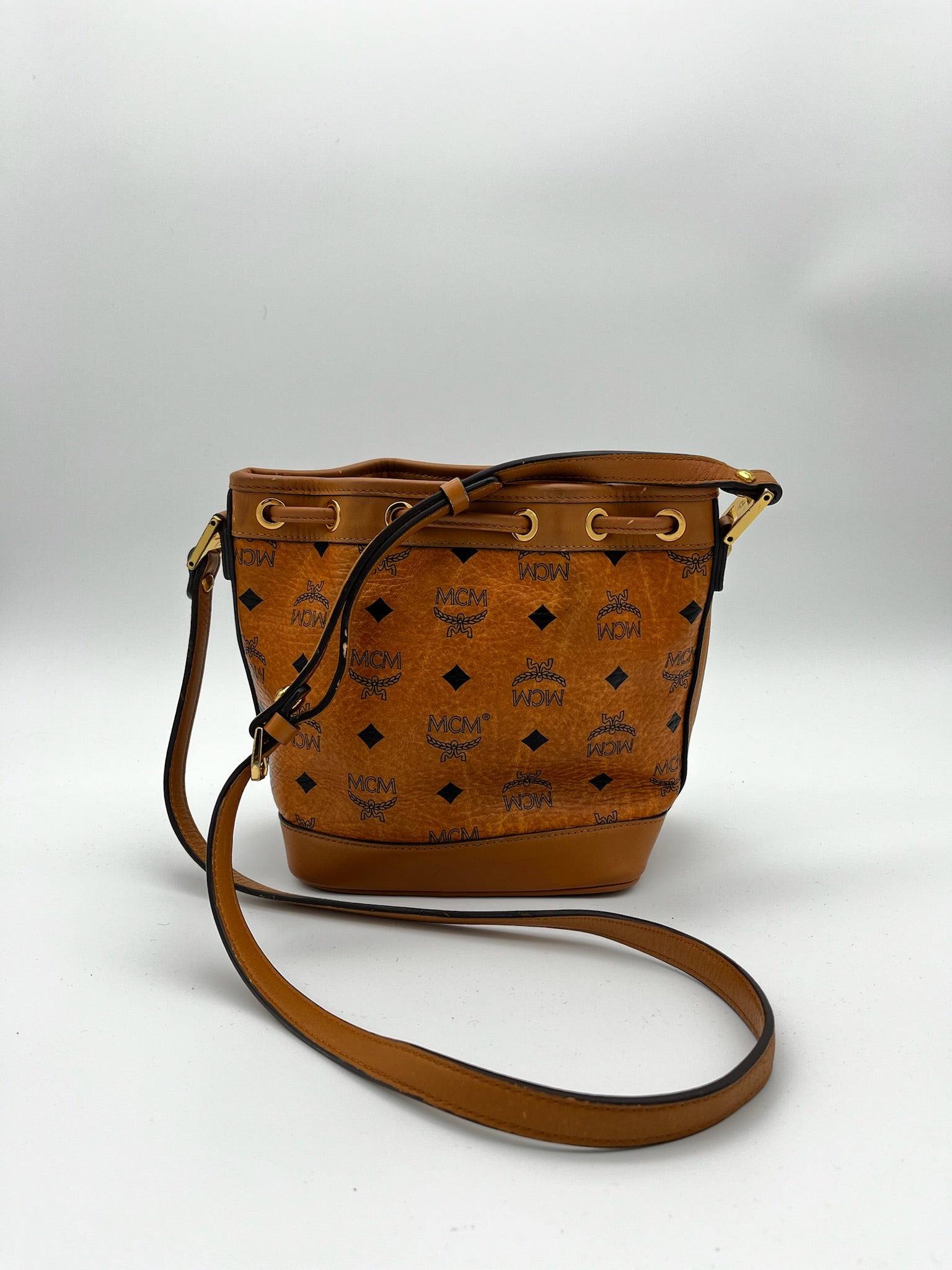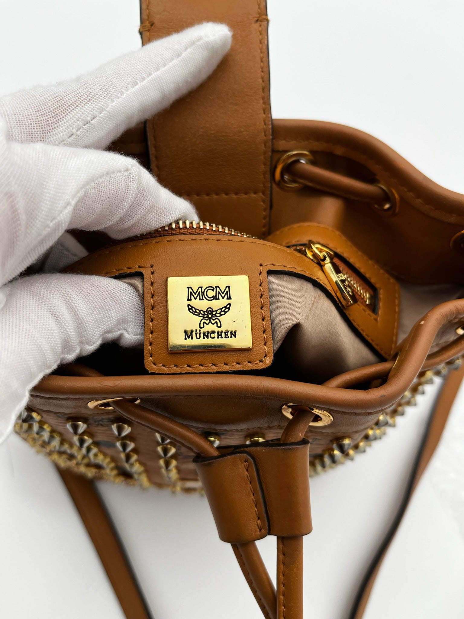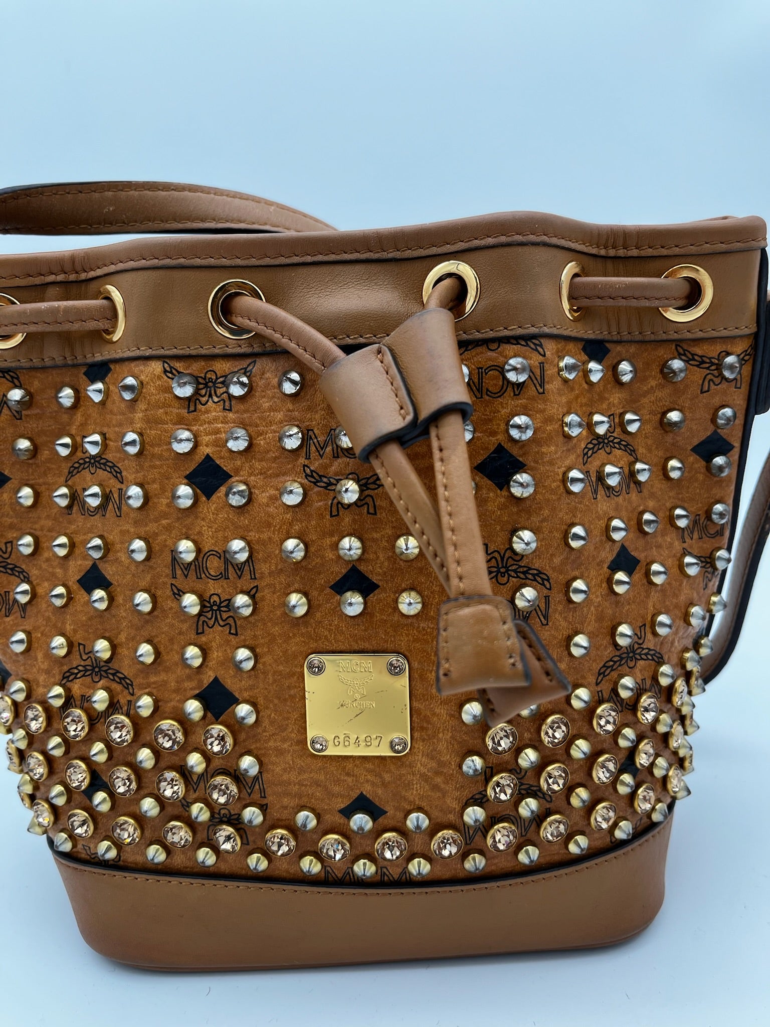 MCM Visetos Studded Drawstring Bucket Bag