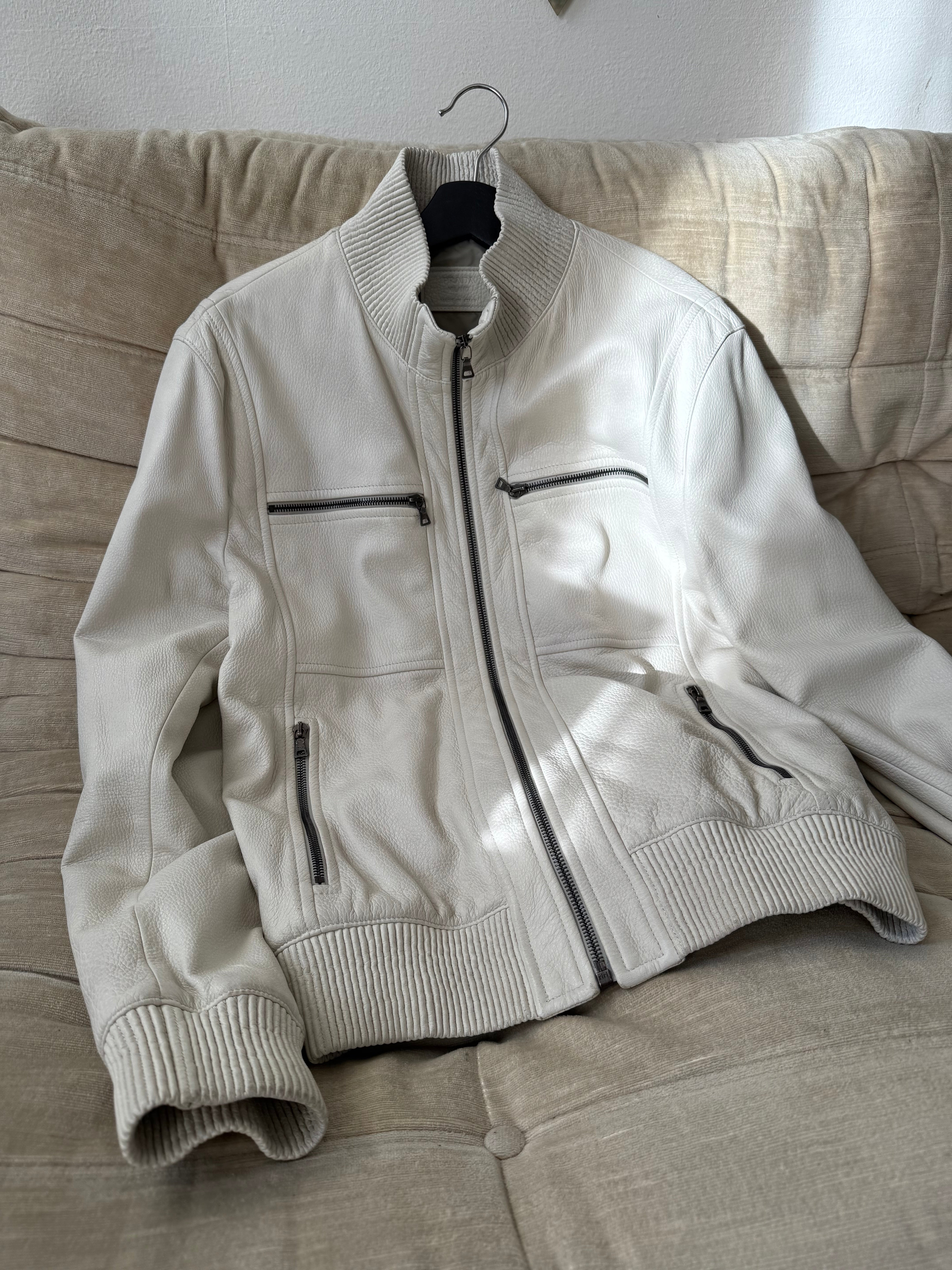 Prada Lederjacke 54 weiß/creme